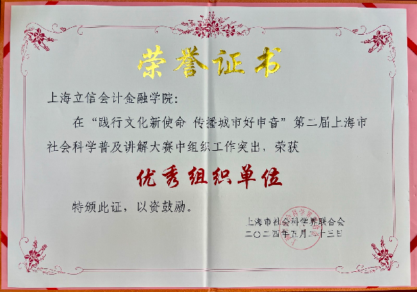 5月18日,我校在上海社科中心举行的第二届上海市社会科学普及讲解大赛决赛中荣获优秀组织单位奖。