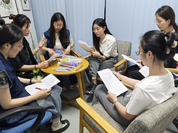培训形式与内容:采用线上线下结合方式,线上学习视频资料,线下由谢梦依老师介绍英语培训及讲解相关要求,组织共同朗读英文版校史演讲稿,逐个规范发音、纠正语音语调。同时,以两人为单位建立学习小组,促进相互学习与协作。
