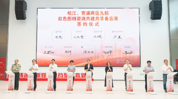 在活动现场,松江、青浦两区的九所高校秉持着合作共赢的理念,共同签署了红色图档资源共建共享备忘录。未来各方将在资源共建方面加强协作,整合优势资源;在展览共享上实现互联互通,让更多师生有机会领略到丰富的红色文化魅力;在人才共育领域深入交流,培养兼具专业素养和家国情怀的新时代青年。通过这些全方位的深化合作,各高校将携手打造区域高校红色育人共同体,共同构建起一个独具特色的“大思政课”实践平台,为培养德智体美劳全面发展的社会主义建设者和接班人注入强大动力。