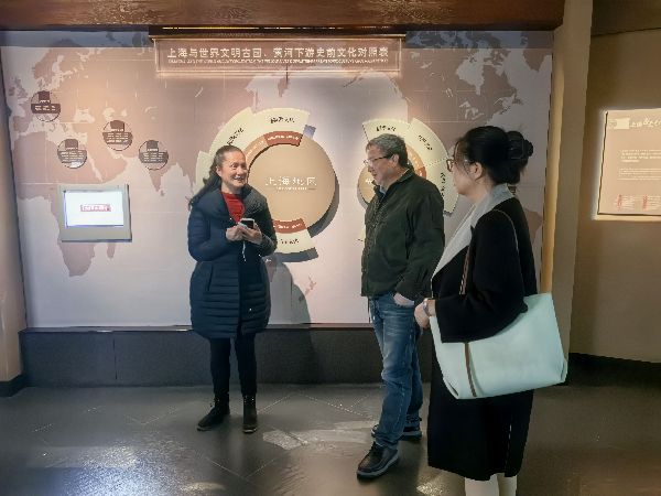 为深化馆校合作,推进文博中心建设与专业发展,3 月 17 日下午,文博中心主任闫锐、博物馆前馆长宋小明教授及工作人员一行赴青浦博物馆参观学习,并开展工作交流。青浦博物馆研究员方芳全程接待并陪同参观。