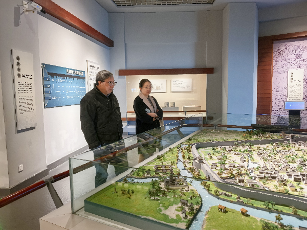 文博中心一行依次参观了青浦博物馆各主题展厅,近距离观摩了馆藏文物、历史文献及特色展陈项目,深入了解了青浦博物馆在文物保护、展陈设计、文化挖掘等方面的先进经验与实践成果。参观过程中,双方围绕馆藏资源整合、展览策划创新、文化 IP 开发等议题展开探讨。