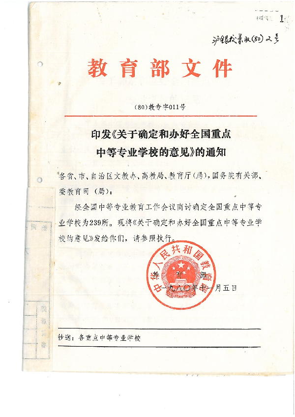 1980年11月5日,上海银行学校被教育部确定为全国重点中等专业学校。