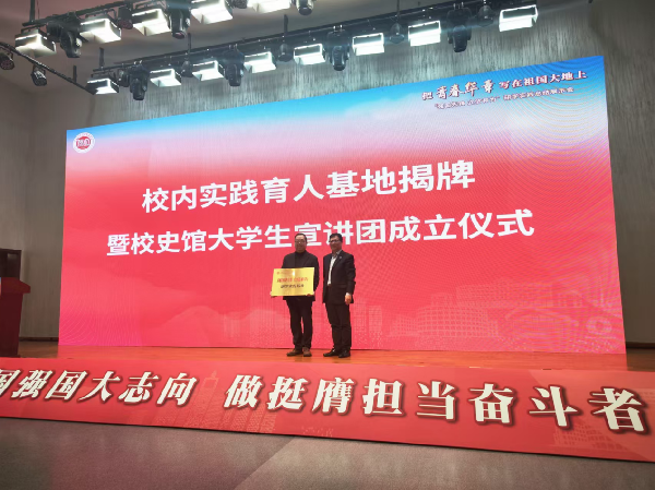 展示会上,校史馆被授予校内实践育人基地。基地的设立为广大学生提供了一个在实践中学习和成长的平台,让更多学生在了解校史校情中学习和思考。未来,校史馆将定期开展对宣讲团成员的培训,加强队伍的凝聚力,充分发挥宣讲团作用。