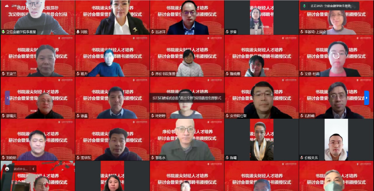 12月23日下午,序伦书院举办书院拔尖财经人才培养研讨会暨荣誉导师聘书颁授仪式。来自中国人民大学、上海交通大学、上海财经大学、上海国家会计学院、众华会计师事务所以及我校等高校和实务界的专家学者围绕主题进行了研讨和交流。校党委副书记、院长杨力出席。会议由序伦书院院长闫锐主持。